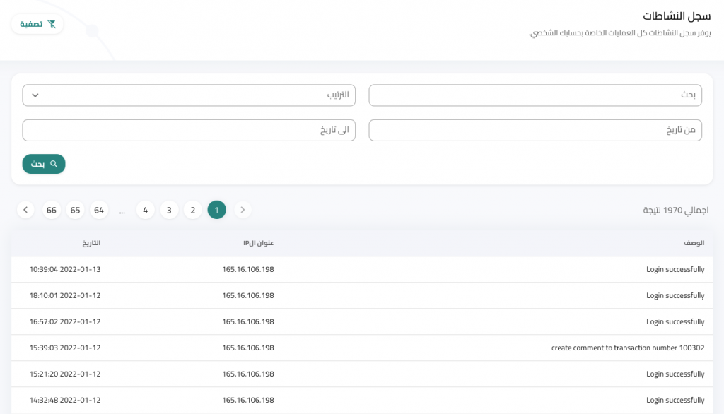 ومن البيانات التي يتم عرضها في سجل النشاطات هي :