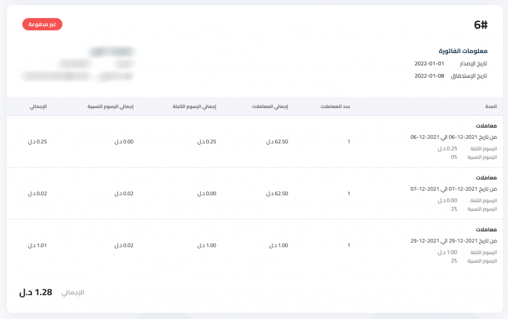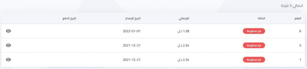في هذه الخانة يظهر لك بلوتو كل الفوتير المستحقه عليك وحالتها وتاريخ التحصبل