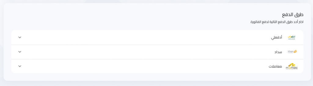 وفي نهاية الفاتورة , طرق دفع الفاتورة