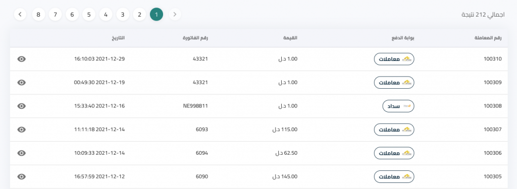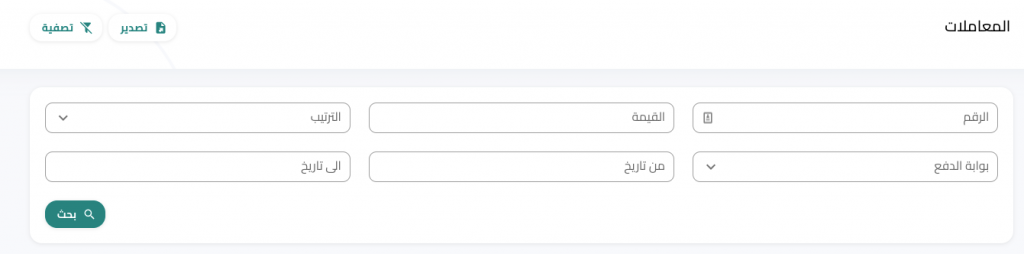 التصفية : وهي الية بحث متقدم, لفرز المعاملات حسب الخانات الموضحة