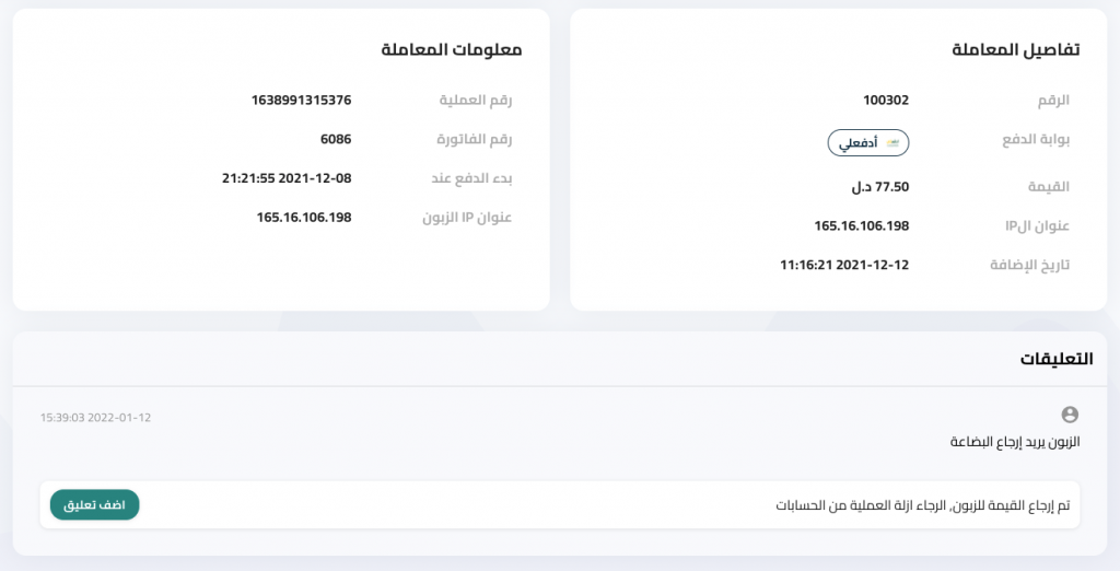 كما يمكنك إضافة التعليقات علي المعاملة في حالة هناك اجرءات خاصة للمعاملة